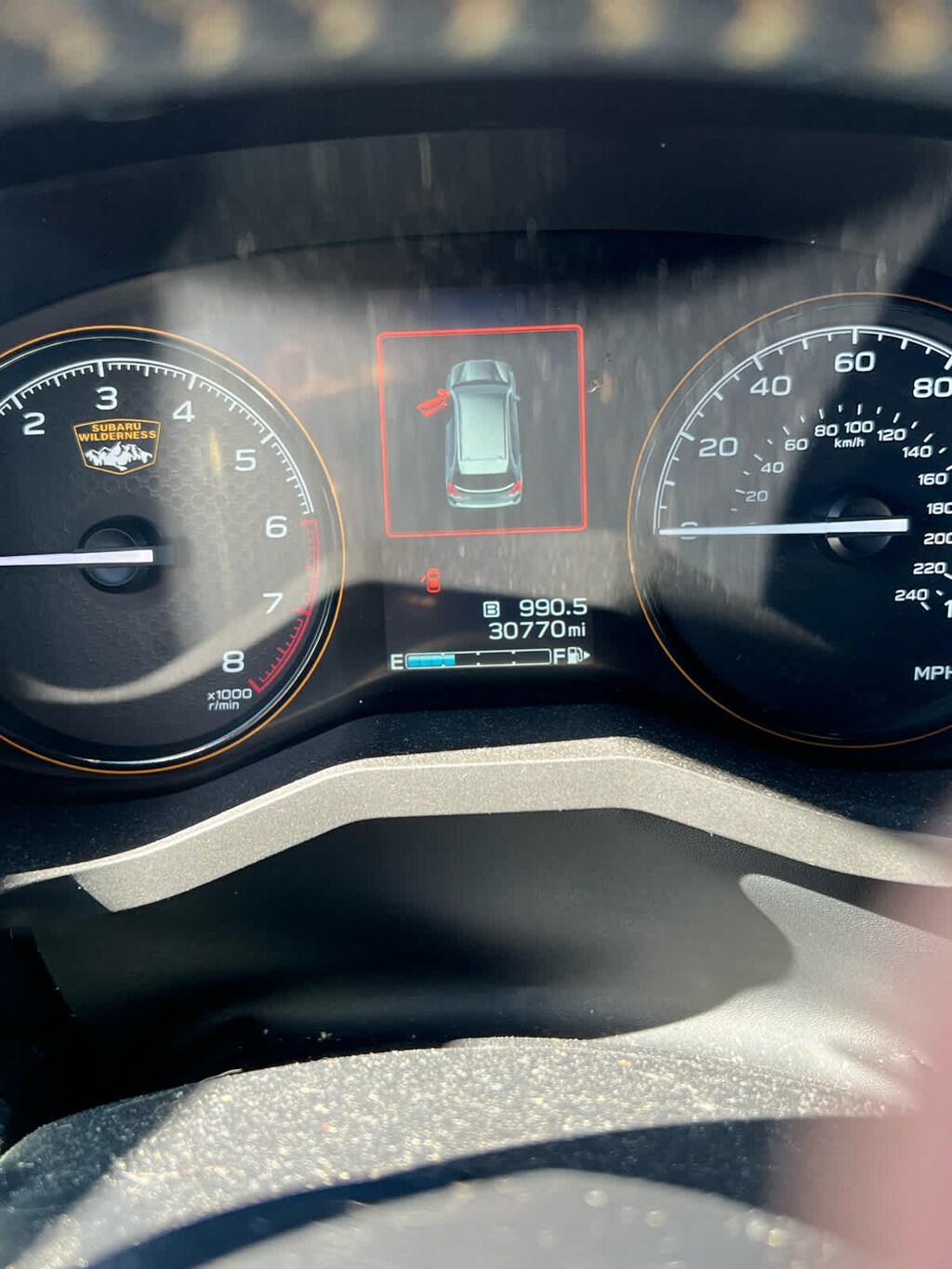 - Lane departure: EyeSight Lane Keep Assist active